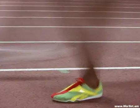 Нога одного из атлетов, бегущих в финале забега у мужчин на 10,000m на 11 чемпионате мира по легкой атлетике в Осаке, Япония