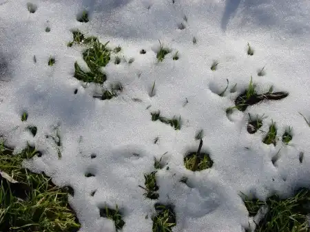 утро, температура около +5, ночью был небольшой мороз, снег начинает таять