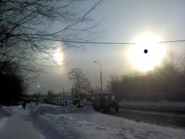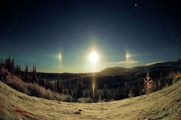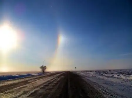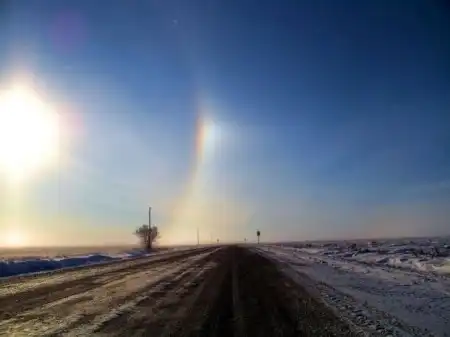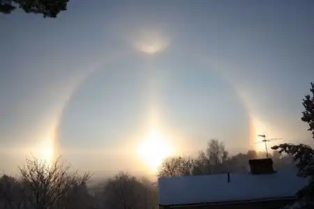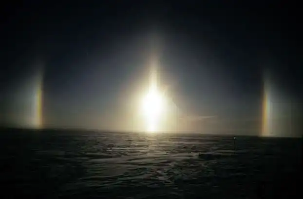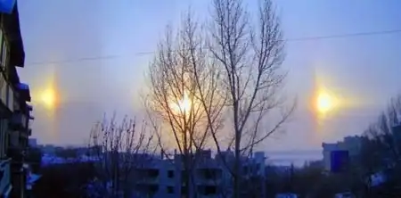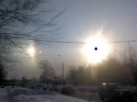 Паргелий (от пара... и греч. hélios - солнце) (ложное солнце) — одна из форм гало, при которой на небе наблюдается одно или несколько дополнительных изображений Солнца. Возникает вследствие преломления солнечного света в анизотропно ориентированных частичках льда, падающих в атмосфере.