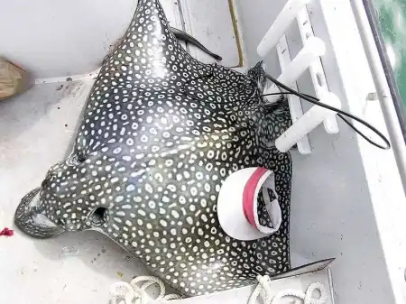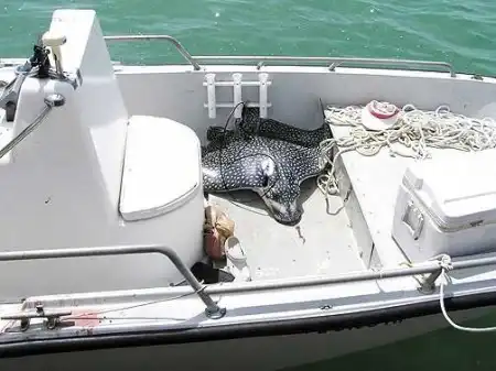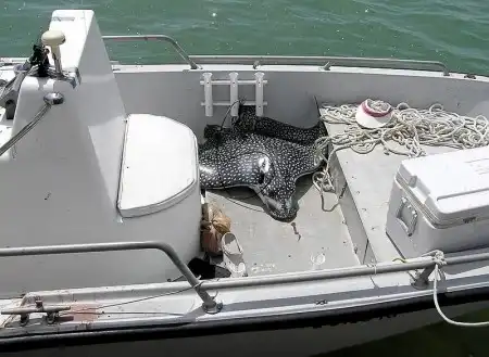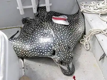 Нашел в инете такую темку, комментируют ее так: Несчастный случай произошел во Флориде. Скат-хвостокол решил выпрыгнуть из воды и попал прямо в лодку, в которой загорала 57-летняя Джуди Кэй Загорски. Финал истории печален: женщина и скат погибли. Я так понимаю оба умерли от шока. Скат ожидал молодую и красивую, но он сильно обломался. Женщина под скатом.