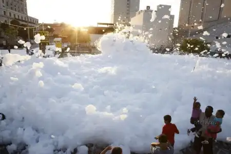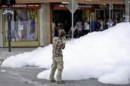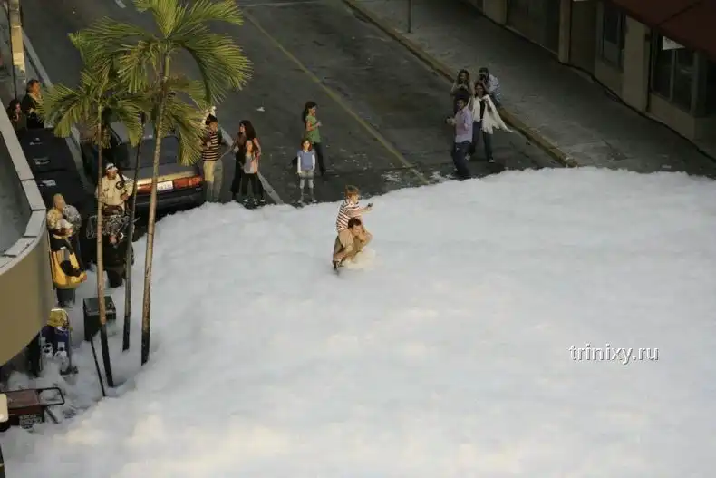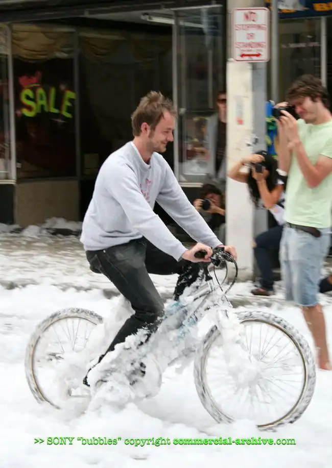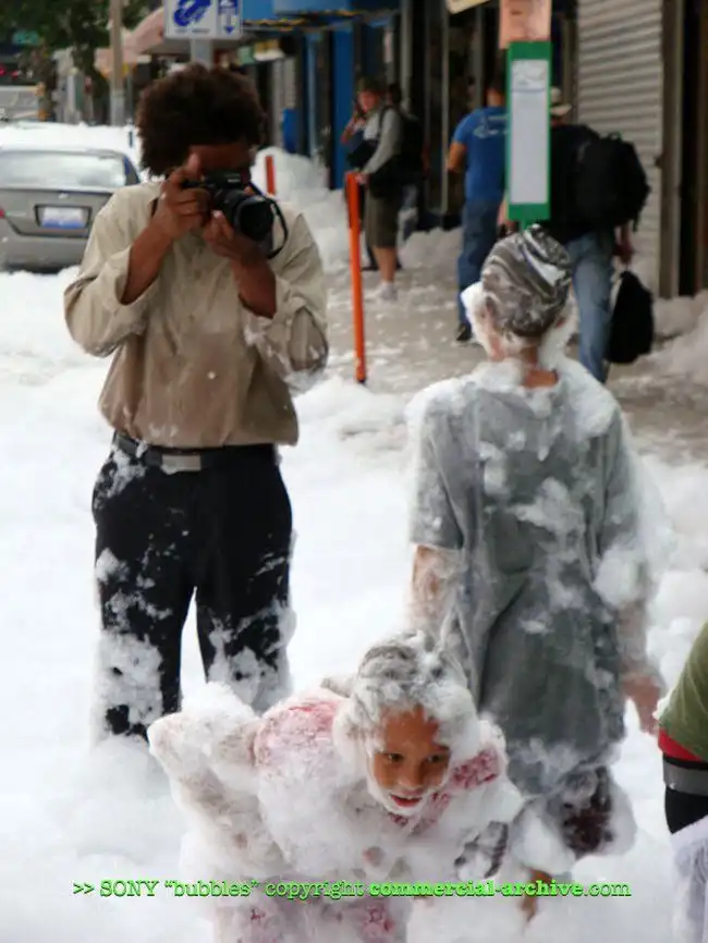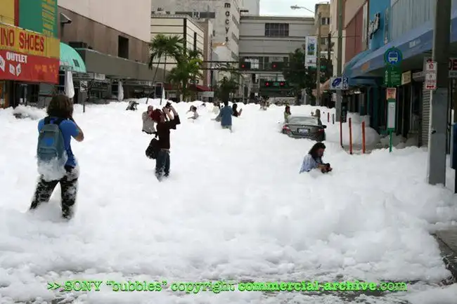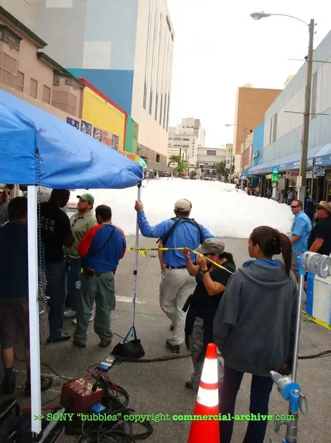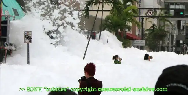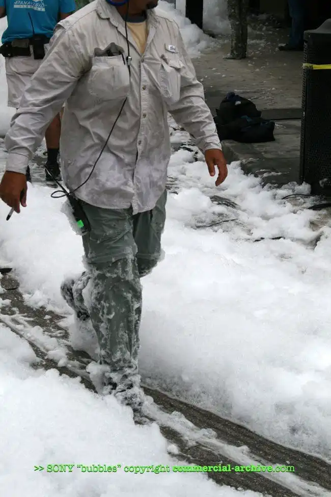 Отличные фотографии и видео со съемок новой рекламы Sony. Они вчера просто затопили Маями пеной. Для ее создания использовалась установка, способная производить 2 миллиона литров пены в минуту.