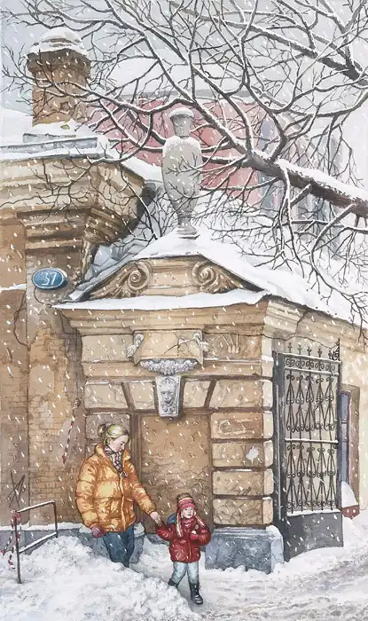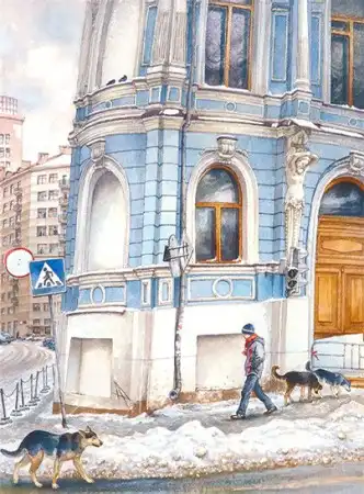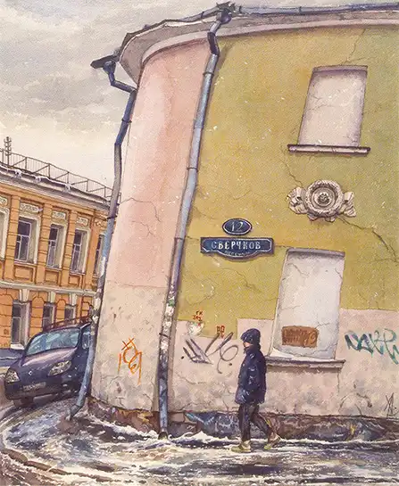 Старушка с авоськой, пес, гоняющий рыжего кота, чудной маленький дом с непомерно большими кариатидами. Они – суть этого города, его прошлое и настоящее. Картины Алёны Дергилевой своего рода терапия и провокация. Потому что после них хочется перестать спешить, остановиться и бесцельно поглазеть по сторонам. Усесться на старую лавочку, скормить кусок колбасы собаке, поговорить по душам со старушками. Остальное подождет. И день этот принесет больше, чем месяцы упорного труда.