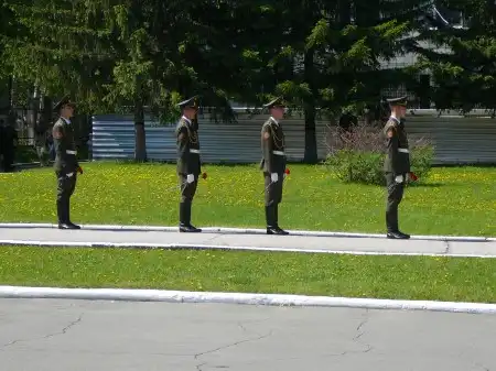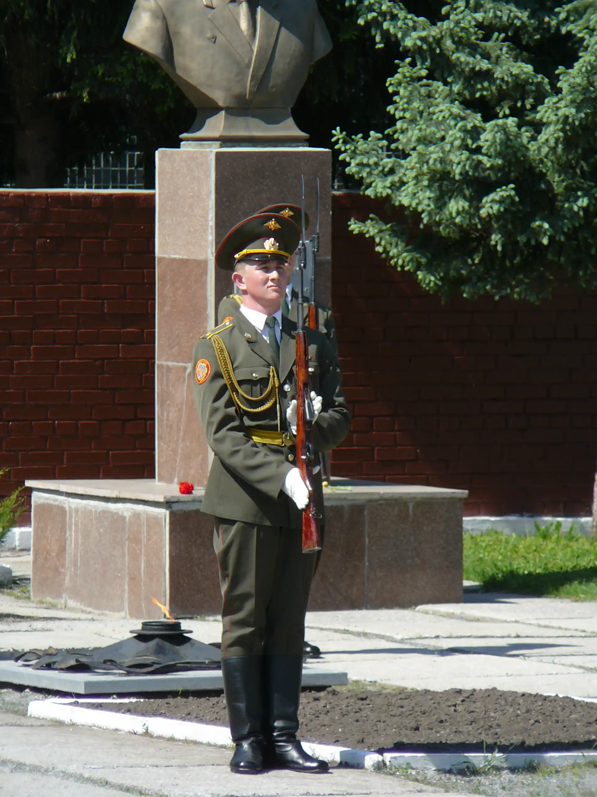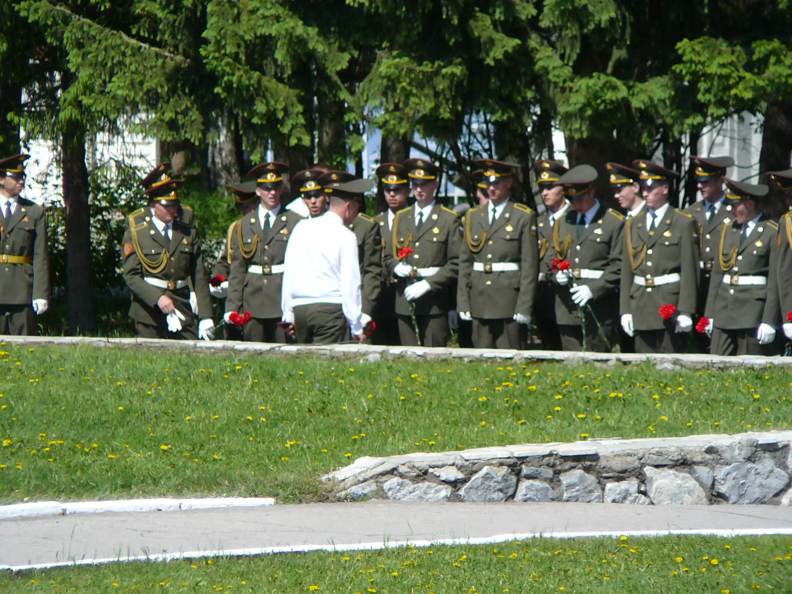 В начале курсанты возложили цветы к памятникам выпускников - героев России и Советского Союза.