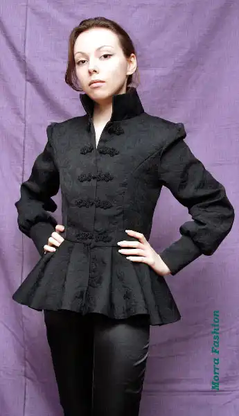 Воротник - стойка. Застегивается на пуговицы в виде камей.