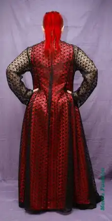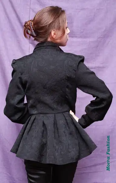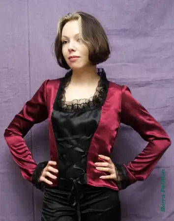 Кофта из бордового и черного атласа с фигурным вырезом.