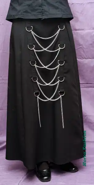 Декорированная полукольцами и шнуровкой из цепочки.