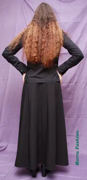 Юбка из габардина на бедрах.