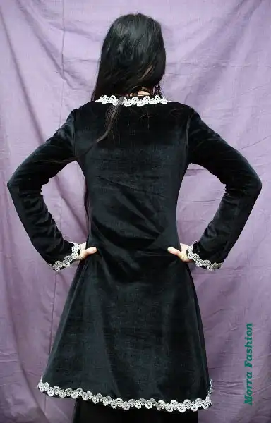 Плащ из черного вельвета с рукавом - клеш на атласном подкладе.