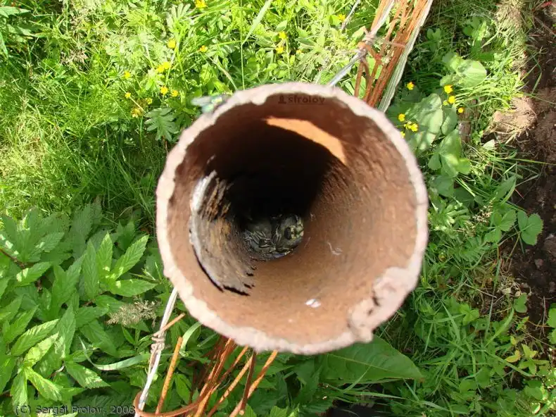 Не думал, что синицы организуют гнездо именно в этой трубе, а не где-то рядом! Я это понял, когда по ней ударила доска, на которую я имел возможность неосторожно наступить. Писк моментально прекратился.