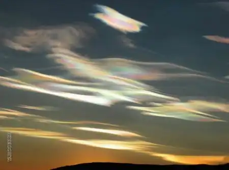 Подобная картина наблюдается во время образования перситых облаков только в течение пары минут. Поэтому эти облака редко кто мог наблюдать.