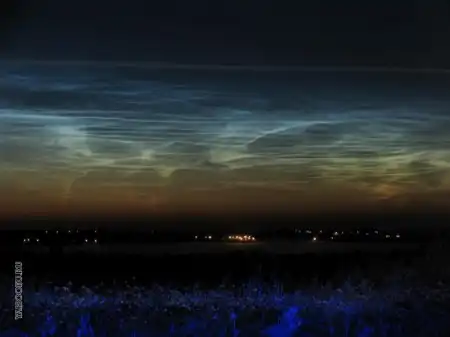 Серебристые облака (также известны как мезосферные облака) — редкие атмосферные явления, подобные облакам, видимые в глубоких сумерках. Они обычно наблюдаются в летние месяцы в широтах между 50° и 60° (северной и южной широты). Это самые высокие облака в атмосфере Земли; образуются в мезосфере на высоте около 85 км, и видны только тогда, когда освещены солнцем из-за горизонта, в то время как более низкие слои атмосферы находятся в земной тени; днем они не видны. При этом их оптическая плотность настолько ничтожна, что через них зачастую проглядывают звезды. Серебристые облака полностью не изучены. Было такое предположение, что они состоят из вулканической или метеорной пыли, но они, как известно по данным со спутника UARS, состоят в основном из водяного льда. Это сравнительно молодое явление ? впервые о них сообщается в 1885, вскоре после извержения Кракатау, и было предположение, что они могут быть связаны с изменением климата. В 1978 году было также озвучено предположение, что серебристые облака представляют из себя оптический эффект, по природе подобный миражам.