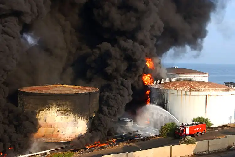 Безуспешные попытки затушить пожар на электростанции на юге Ливана