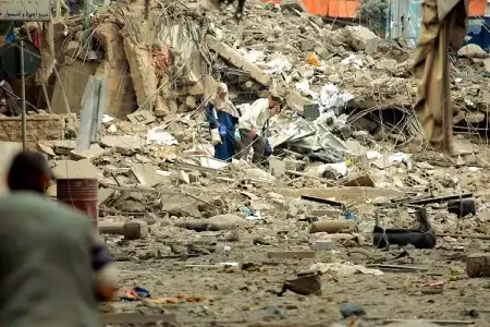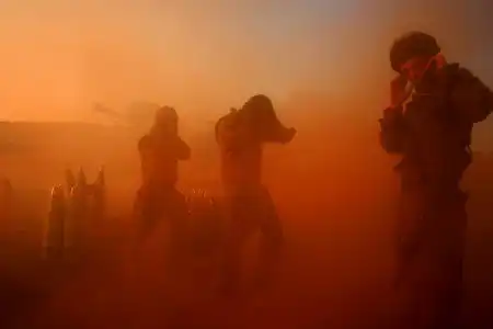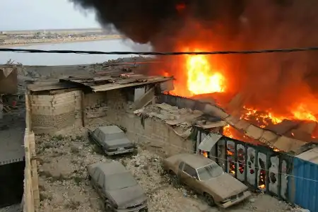 Ливанский пожарник на тушении фабричного здания неподалеку от Тиры