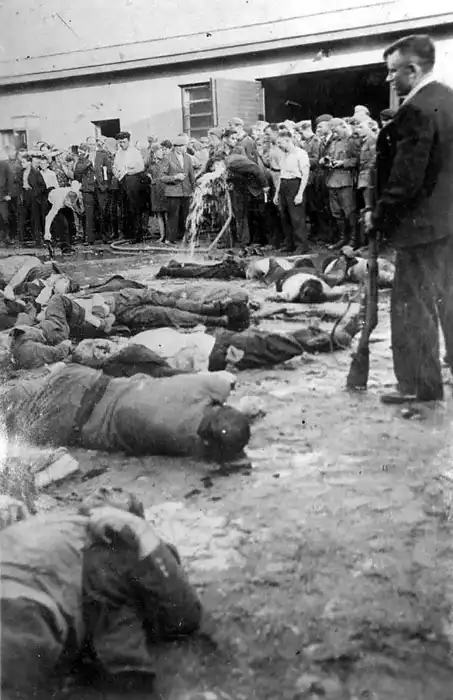 Жительница Львова у тела своего ребенка, расстрелянного в гетто