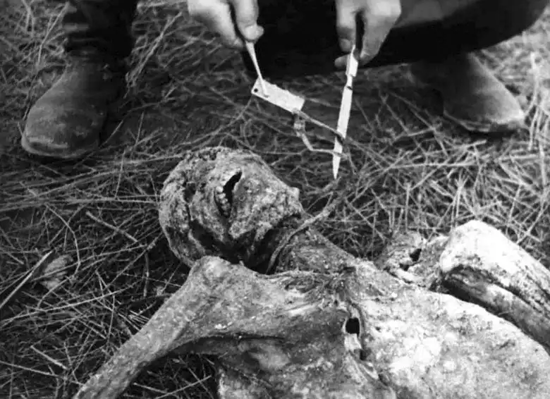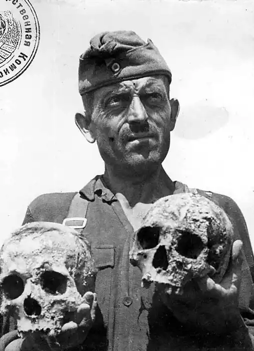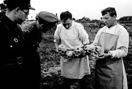 Представители Чрезвычайной Государственной комиссии осматривают черепа жертв фашистского террора в г.Орле