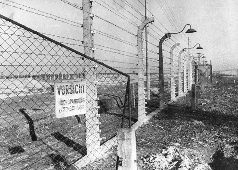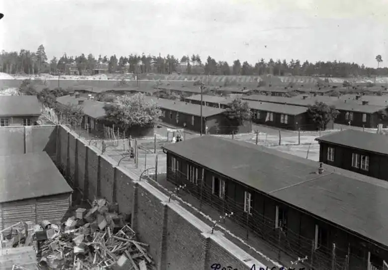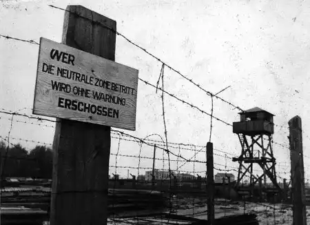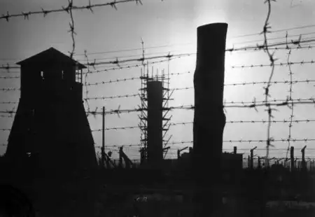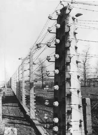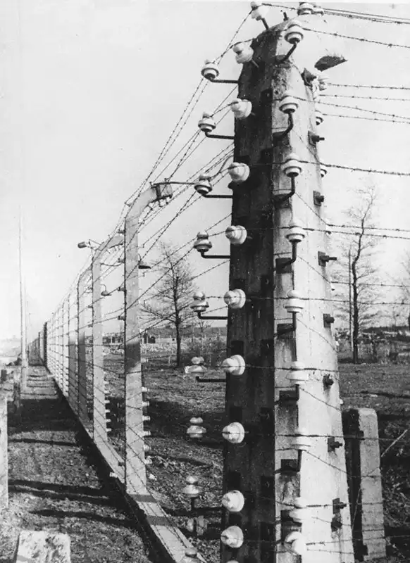 Вид крематория и различные типы проволочных оград в концентрационном лагере «Майданек»