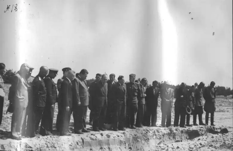 Члены ЧГК осматривают места захоронений в концлагере «Демблин»