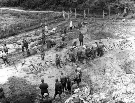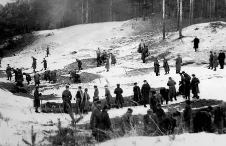 Немецкие военнопленные на работах по эксгумации узников концлагере «Демблин»