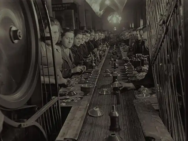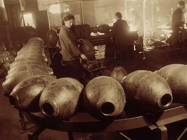Изготовление деталей для снарядов на оборонном заводе. Москва.