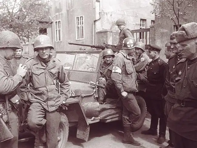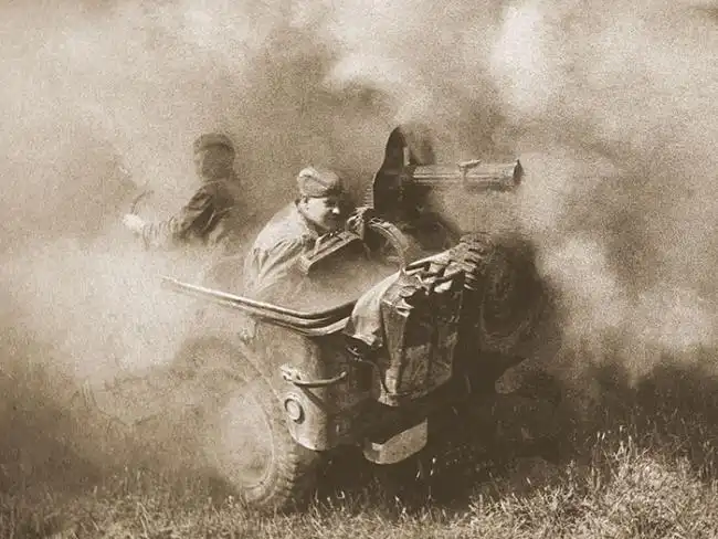 Американские солдаты демонстрируют вооружение «Виллиса».