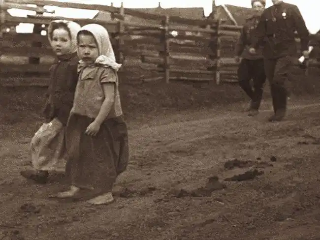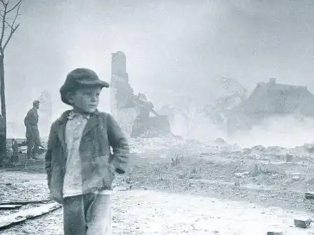 15 июля 1943 года Толя Фролов на пепелище своего дома. Село Ульяново Орловской области.