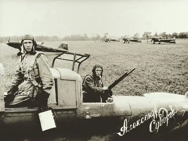 Лучший экипаж штурмовика-охотника «Александр Суворов» младший лейтенант В. Т. Алексухин и стрелок А. Д. Гамаюнов.