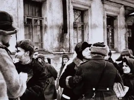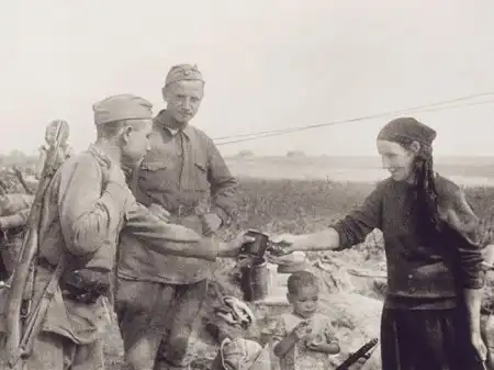 Жители освобожденного Кировограда встречают своих освободителей бойцов и офицеров Красной Армии.