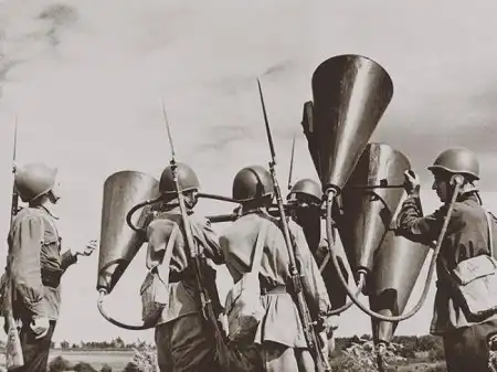 Расчет «слухачей» сержанта А. С. Котикова за работой.