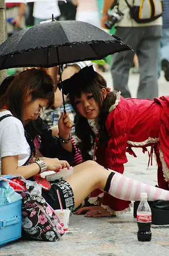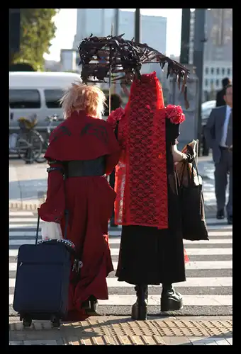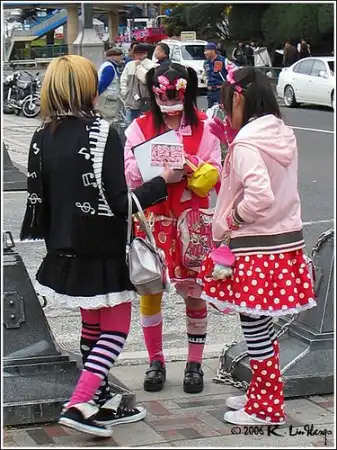 Во всех других районах люди следуют тенденциям, а здесь они рождаются. На этом посторен большой бизнес- эти тенденции вбирают в себя крупные марки и потом выкидывают обратно в широкие массы. Есть 15-20 трендсеттеров, которые всё это придумывают, остальные же, в большинстве, им подражают. Здесь появились множество стилей- lolita fashion, gothic lolita, yamamba, культ симпотичности, ностальгии и многие другие. Каждый стиль- это отдельный мир, в котором соединяются самые различные составляющие. Допустим, Loli Goth появился соеденив в себе британские стили New Wave, Goth и японские Shojo Manga, Figure Doll, Otaku, pop band. И навряд ли, Вы найдёте много сходств у наших готов и японских, даже внешних ( стоит хотя бы посмотреть клип Obscure самой популярной у Loli Goth группы- Dir en grey, чтобы ощутить разницу). Тоже касается и японских панков, для появления которых в Японии не было никаких социальных причин и которые оказываются слишком вежливыми, милыми и порядочными для настоящих панков.