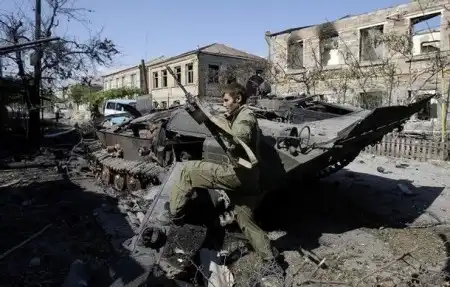 Цхинвали полностью разрушен. Горят административные здания, разрушены больница, университет, театр, разбомблена пожарная часть, сожжен городок миротворцев. Местные жители, среди которых много женщин и детей, прячутся в подвалах. У них нет воды, еды, медицинской помощи. Единственная дорога, по которой они могут покинуть город, постоянно обстреливается из минометов и установок «Град».