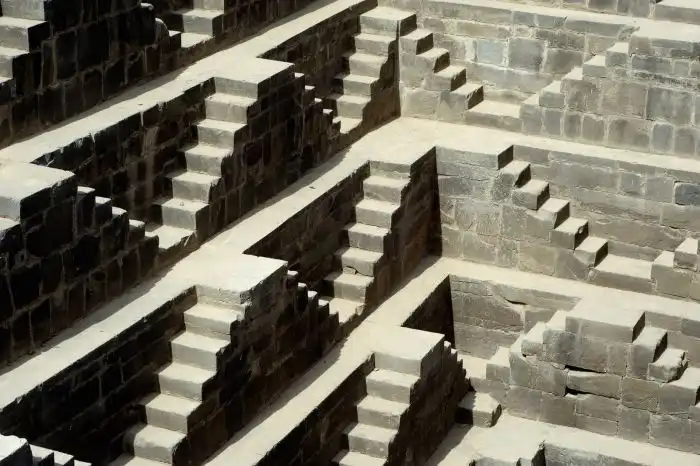 Chand Baori — один из самых глубоких ступенчатых колодцев в Индии. Его глубина около 30 метров. 3500 узких ступенек, ведущих к воде, выстроены в 13 этажей.