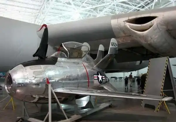 Этот необычный истребитель — McDonnell XF-85 Гоблин — был разработан специально для размещения в бомбовых отсеках межконтинентальных бомбардировщиков для их защиты от перехватчиков врага.