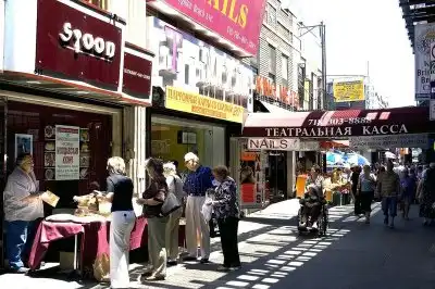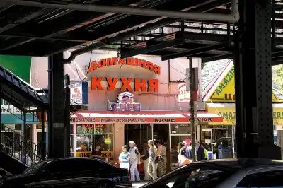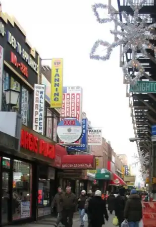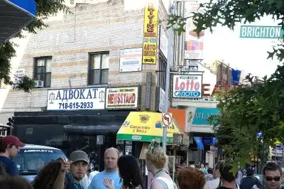 Брайтон-Бич – это район Нью-Йорка, расположенный в южной части Бруклина. Район приобрел известность в 70-х годах прошлого столетия, когда там стали селиться иммигранты из бывшего Советского Союза, главным образом, из России и Украины. Район насчитывает около 100 тысяч жителей. Брайтон Бич известен во всем мире своими концертными залами, кафе и ресторанами. В этом районе множество культурных центров русской общины, среди которых, редакции русскоязычных газет, радиостанции, телестудии, центры досуга, школы и обширная русскоязычная инфраструктура. Действительно, сразу и не скажешь что это штаты:)