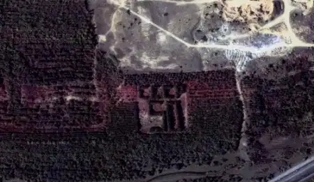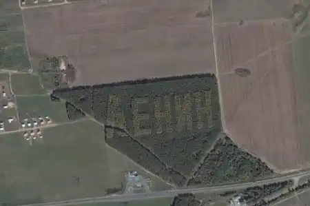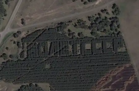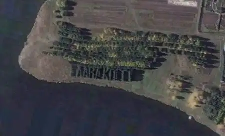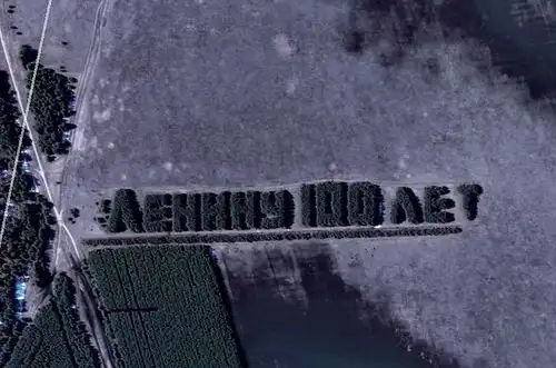 както раз, толи от нечего делать, толи от того что людям было нечего делать, они решили жестоко приколоться, а так как в то время за несоблюдение норм и правил опять же жестоко растеливали, было решино "засодить" отдельные куски велликой нашей родины (судя по фотографиям) деревьями, да не просто засодить, а так чтобы этим буржуям с запада со своими спутниками было видно... на сколька наша страна креативна...)))
