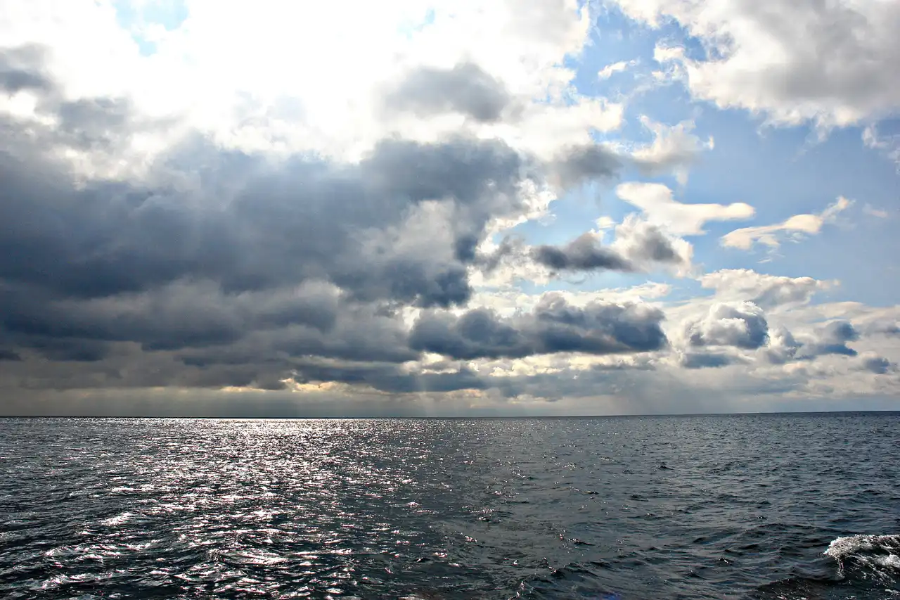 Все заправду: слева ясно, а справа вода со свинцовым оттенком.