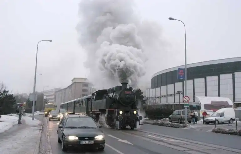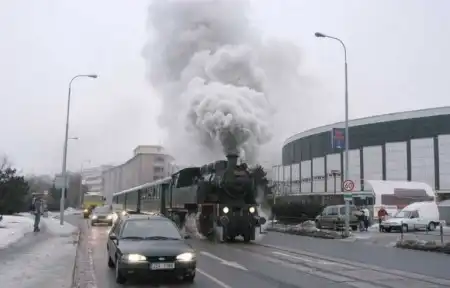 Паровоз на улицах города