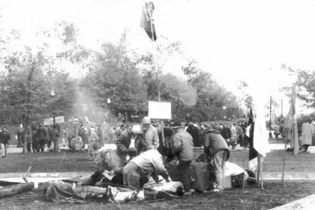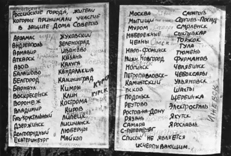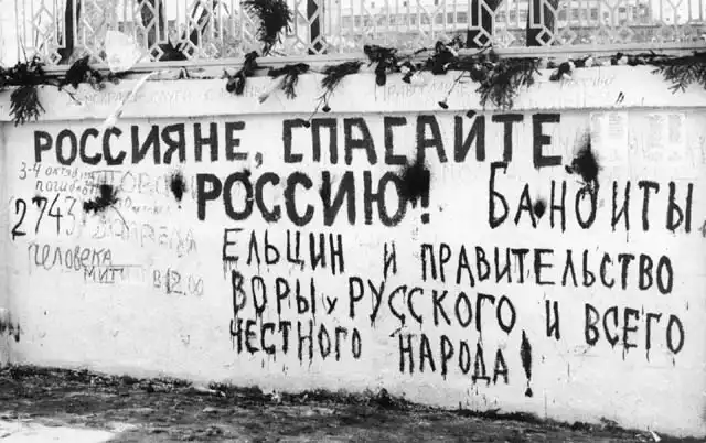 В сентябре – октябре 1993 года организованная преступная группа, возглавляемая гр. Ельциным Б.Н., осуществила действия, направленные на насильственное изменение конституционного строя Российской Федерации, сопряжённые с совершением с особой жестокостью по предварительному сговору общеопасным способом убийством, двух и более лиц, и выразившиеся в отстранении от государственной власти её высшего органа – Верховного Совета РФ, и расстреле из стрелкового и артиллерийского оружия в г. Москве граждан, защищавших конституционный строй, то есть совершила преступления, предусмотренные ст.ст. 278, 105 (ч. 2, пункты а, д, е, ж) УК РФ...