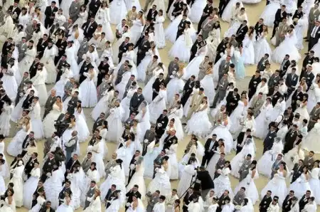 Церемония проходила в двух разных церквях - 150 пар в одной и 550 в другой.