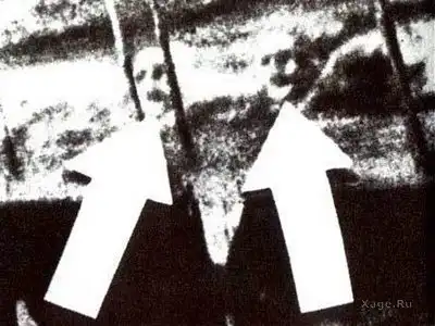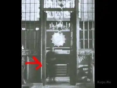Однако после проявки на фотографии было замечено размытая фигура человека, взбирающегося по лестнице, держась обеими руками за перила.