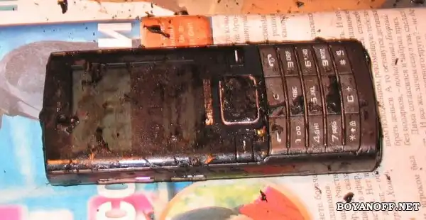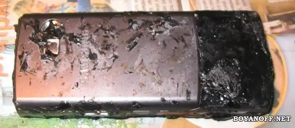 Но сегодня, перекрывая крышу дачи рубероидом, я умудрился уронить дуос Samsung D780 в ведро с кипящей смолой. Телефон просто выпал у меня из внутреннего кармана куртки. Я абсолютно рефлекторно сунул руку в горячую жижу и выкинул утопленика, при этом, благодаря перчаткам, заработал лишь ожог большого пальца 2 степени.