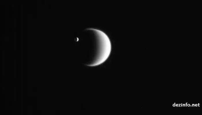Его диаметр составляет около 504 км, и он имеет атмосферу с пылью и паром. Температура — минус 200 градусов по Цельсию.