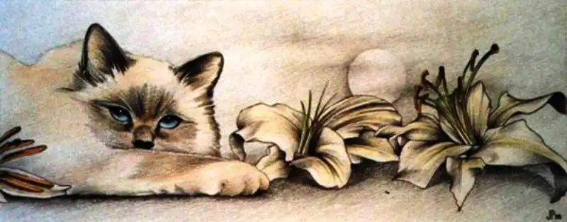 Много рисованных кошек.