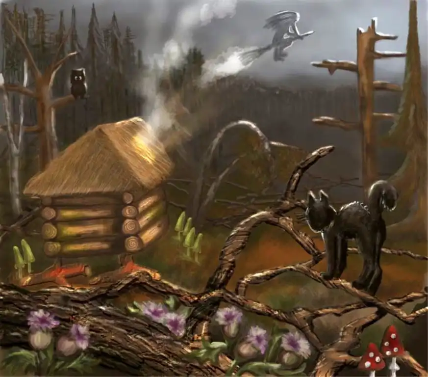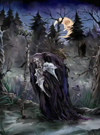 Но все-таки Баба-Яга - существо более опасное, обладающее куда большей силою, чем какая-то ведьма. Чаще всего она обитает в дремучем лесу, который издавна вселял страх в людей, поскольку воспринимался как граница между миром мертвых и живых. Не зря же ее избушка обнесена частоколом из человеческих костей и черепов, и во многих сказках Баба-Яга питается человечиной, да и сама зовется «костяная нога».
