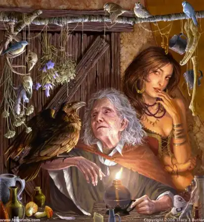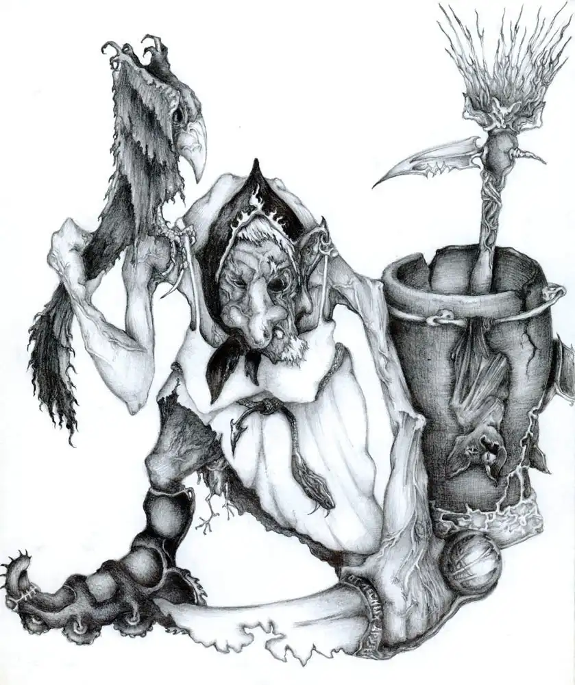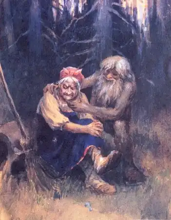 БАБА-ЯГА(Яга-Ягинишна, Ягибиха, Ягишна) - древнейший персонаж славянской мифологии. Первоначально это было божество смерти: женщина со змеиным хвостом, которая стерегла вход в подземный мир и провожала души почивших в царство мертвых. Этим она несколько напоминает древнегреческую деву-змею Ехидну. Согласно античным мифам, от брака с Гераклом Ехидна родила скифов, а скифы считаются древнейшими предками славян. Не зря во всех сказках Баба-Яга играет очень важную роль, к ней порою прибегают герои как к последней надежде, последней помощнице - это бесспорные следы матриархата.