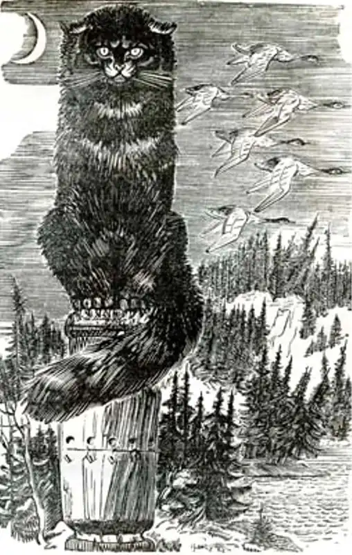 Образ волшебного кота был широко распространен в русских лубочных повестях. Вероятно, оттуда он был заимствован А. С. Пушкиным. Образ кота ученого - неотъемлемого представителя сказочного мира - он ввел в Пролог поэмы "Руслан и Людмила".