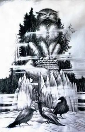 Персонаж русских волшебных сказок. В образе кота Баюна соединились черты сказочного чудовища и птицы, обладающей волшебным голосом. В сказках говорится о том, что Баюн сидит на высоком железном столбе. Он обессиливает каждого, кто пытается подойти к нему, с помощью песен и заклинаний. Чтобы захватить волшебного кота, Иван - царевич надевает железный колпак и железные рукавицы. Поймав животное, Иван - царевич доставляет его во дворец к своему отцу. Там побежденный кот начинает сказки сказывать и помогает исцелить царя.