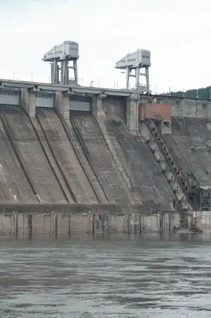 Красноярская ГЭС: Бетонная плотина высотой 124 м и длиной 1065 м