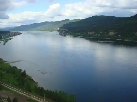 Водохранилище Красноярской ГЭС - длина около 400 км, ширина до 15 км, глубина до 100 м. Самое большое водохранилище пресной воды - Красноярское море. Искусственный водоем раскинулся на 400 км от г Дивногорска до столицы республики Хакасия Абакана.