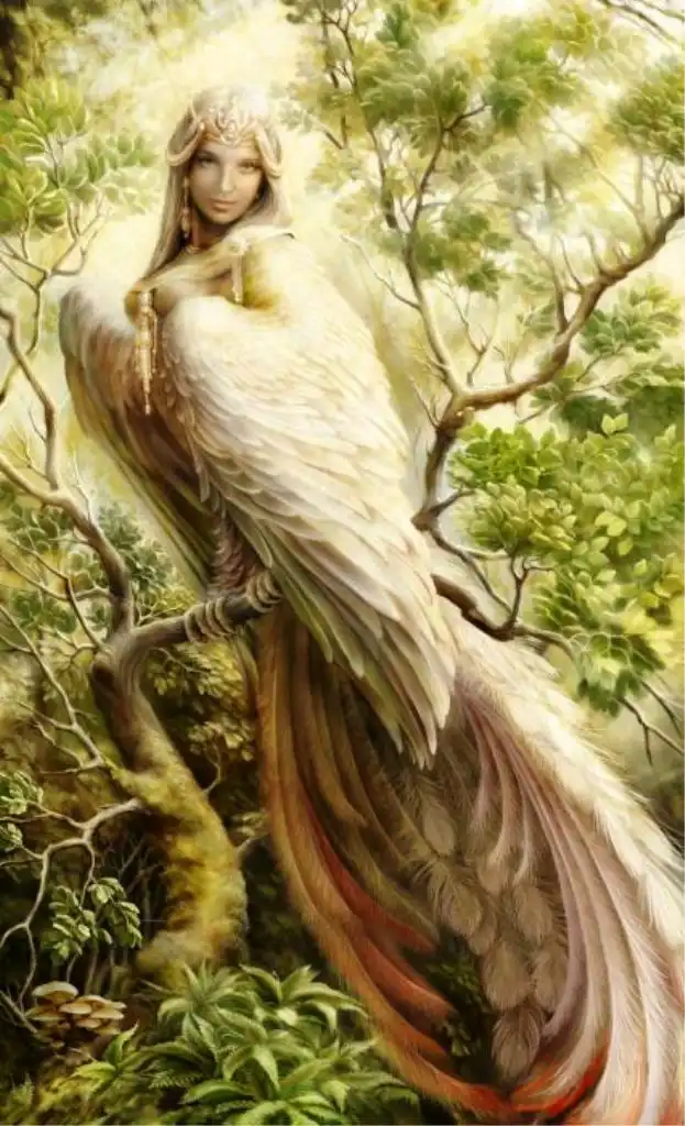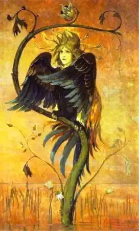 Сирин - темная птица, темная сила, посланница властелина подземного мира. От головы до пояса Сирин - женщина несравненной красоты, от пояса же - птица. Кто послушает ее голос, забывает обо всем на свете, но скоро обрекается на беды и несчастья, а то и умирает, причем нет сил, чтобы заставить его не слушать голос Сирин. А голос этот - истинное блаженство!
