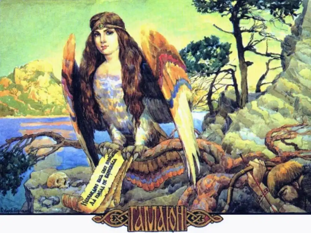 Гамаюн все на свете знает о происхождении земли и неба, богов и героев, людей и чудовищ, зверей и птиц. По древнему поверью, крик птицы Гамаюн предвещает счастье.